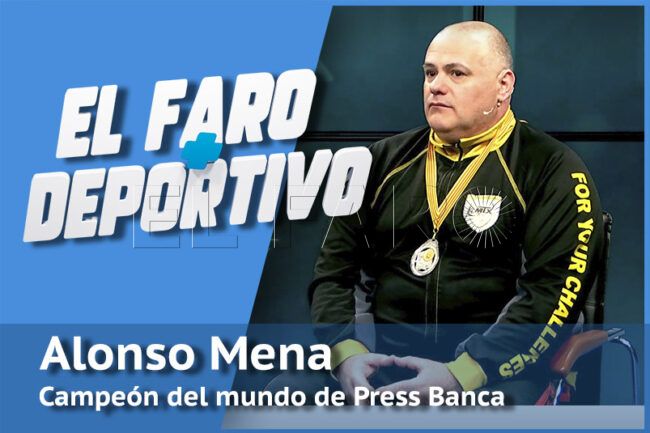 Alonso Mena ha sido reciente campeón del Mundo en máximas repeticiones de Press Banca, una disciplina derivada del Powerlifting. El ceutí se proclamó vencedor en la localidad alicantina de Alfaz del Pi y ha venido al programa El Faro+Deportivo para contar sus sensaciones y cómo se siente tras haber revalidado título después de haberlo logrado en 2019 por lo que este año ha sido su segundo campeonato del mundo.