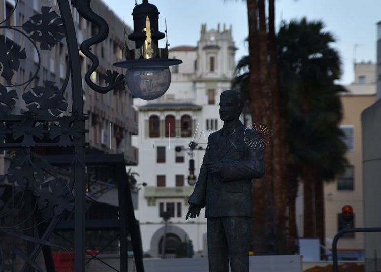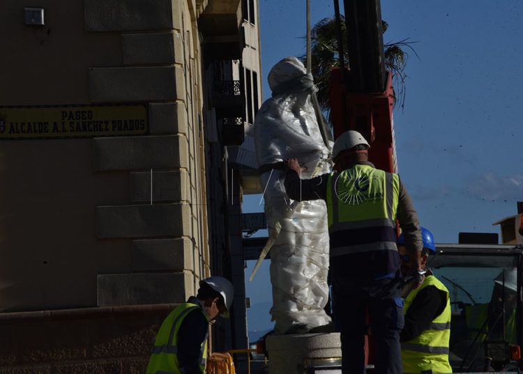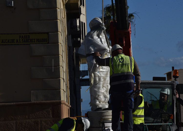 Los operarios han colocado este miércoles los dragones en las farolas y han devuelto la estatua del alcalde Antonio López Sánchez-Prado a su pedestal de Gran Vía