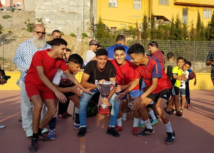 La entrega de trofeos clausuró este torneo en el mes de Ramadán en la pista del Poblado de Regulares organizado por Tarek, como vocal de deportes de la AA.VV. Los Rosales.