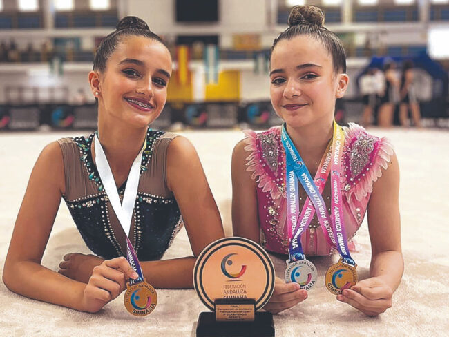 Por otro lado, el equipo infantil, formado por Lucia Suárez y Andrea Gallego, consiguió el sábado una más que honrosa tercera posición entre los 58 equipos andaluces participantes, tocando metal y sumando para el medallero local. Andrea, por su parte a nivel individual, se alzó con la merecida medalla de plata en la categoría de pelota con una meritoria puntuación de 14,650. Por su parte, Lucia obtuvo una meritoria quinta posición en el certamen.