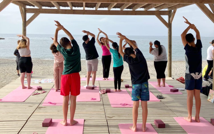 La playa del Chorrillo ha sido el escenario extraordinario donde en dos sesiones de yoga, una de nivel principiante y otro intermedio, se ha dado el cierre a este 'Yoga en el recreo'.