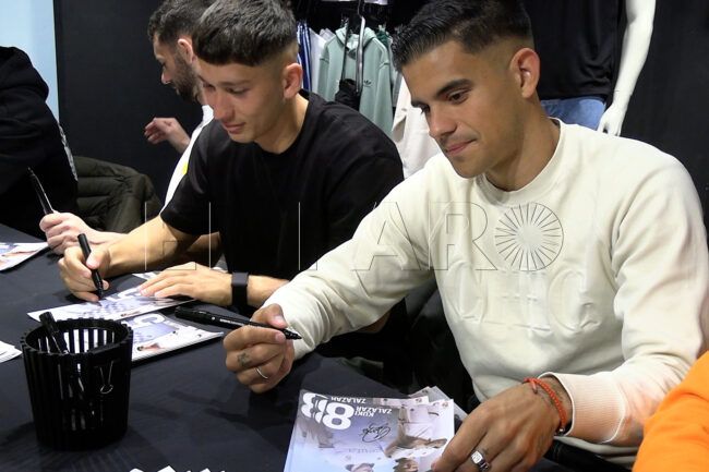 Alrededor de cien personas hacían cola a las afueras de dicha tienda, esperando su turno para entrar y poder conocer a los futbolistas en primera persona y que estos les firmarán sus camisetas, fotos e incluso bufandas.