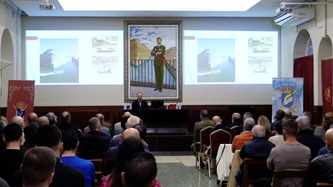 Ha tenido lugar a las 19:00 horas frente a un público agradecido, militar en su mayoría, que se ha mostrado muy atento al contenido relatado por el conferenciante.