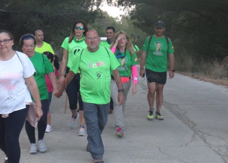El clud de senderismo organizó este fin de semana una marcha en horario nocturno por los montes de Ceuta. Unos cincuenta marchadores se dieron cita para comenzar de día y recorrer buena parte del monte García Aldave por la noche.