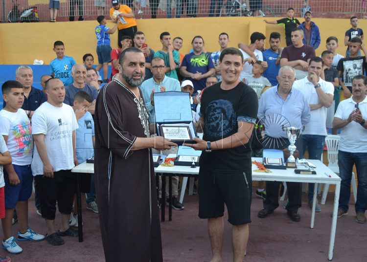 Posteriormente se han procedido a la entrega de trofeos con la presencia de los diputados de Caballas, Mohamed Alí y Juan Luis Gutiérrez, el diputado del PSOE, Manuel Hernández, el presidente de la Federación Provincial de Asociaciones de Vecinos, Juan Moreno Crespo y miembros de la Federación de Fútbol de Ceuta y de las empresas colaboradoras con el torneo.
