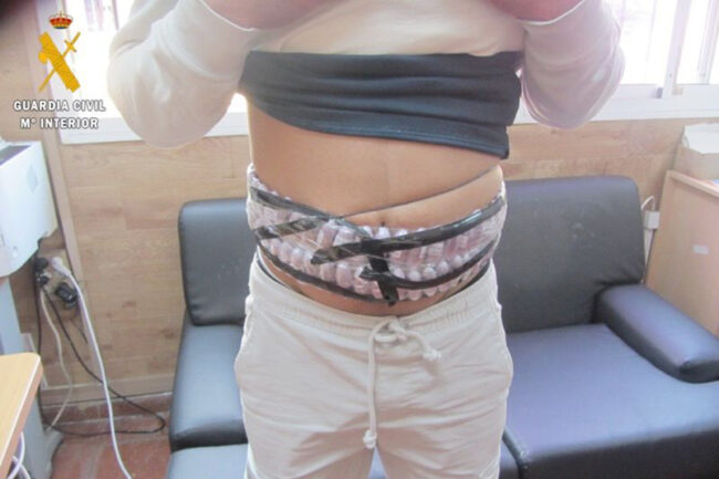 Este pasado jueves, componentes de la Benemérita detuvieron a uno de esos pasadores. Un joven de solo 24 años, extranjero con permiso de residencia en España. Llevaba 1 kilo de hachís adosado al cuerpo. Le sorprendieron y terminó con los grilletes puestos por cometer un delito contra la salud pública.