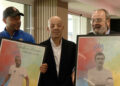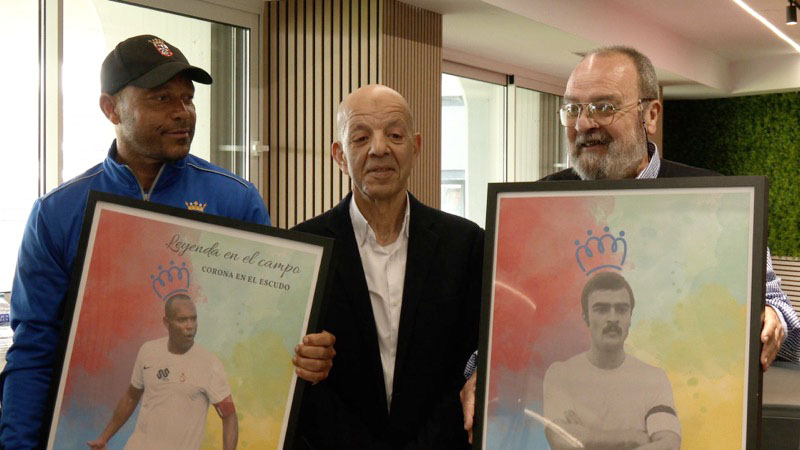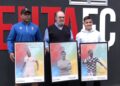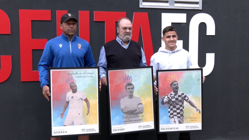 Pionero, profesional y leyenda. Cada una representada por un ídolo de la afición de la AD Ceuta. Pepe (pionero), Aisar (profesional) y Sandro (leyenda). Los tres, antes de finalizar, posaron con unas láminas que les entregó la fundación.