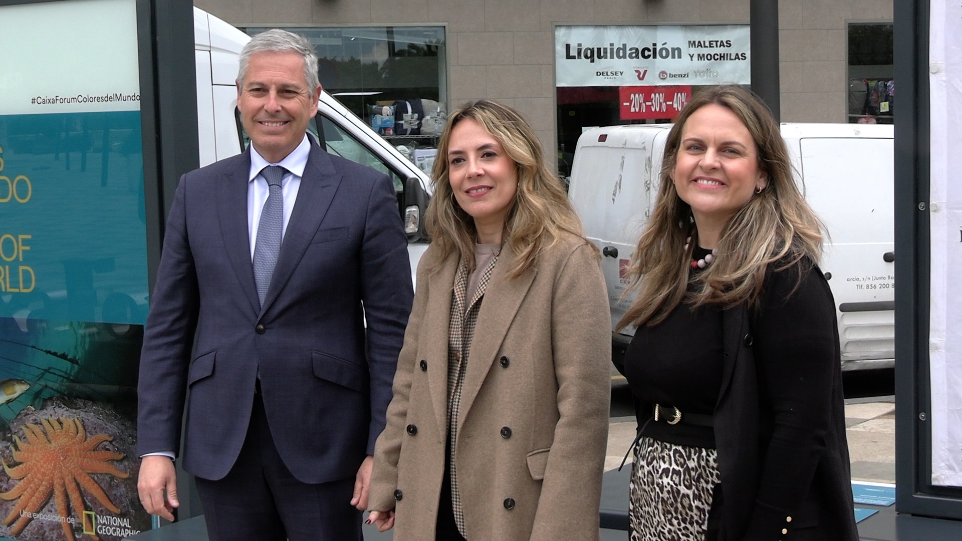 Este martes se ha inaugurado en el Paseo de la Marina. Durante el acto, representantes de la Fundación La Caixa, entidad responsable de traer la muestra y la consejera de Cultura, Pilar Orozco, han puesto de manifiesto el vínculo entre ambos organismos.