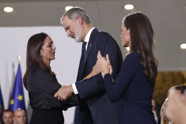 La reina Letizia conversó durante varios minutos con Toñi García, esposa del fallecido Miguel Carpio y madre de Sara, de 24 años, saliendo visiblemente emocionada.