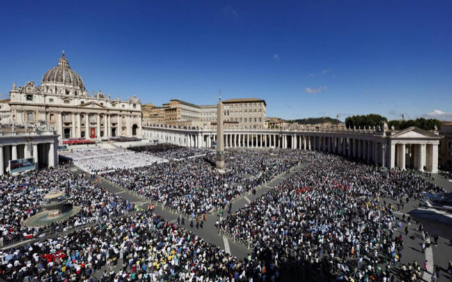 De acuerdo con el reporte del Vaticano, la plaza, con una capacidad para 40.000 personas, llegó a su máximo aforo y las autoridades se vieron obligadas a reubicar a la marea de fieles en los aledaños, donde se colocaron pantallas gigantes para que de esta manera pudieran seguir la ceremonia.