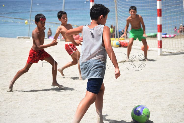 El 'Campus de Verano' de la Real Federación de Fútbol de Ceuta sigue su curso y en esta semana varios de los grupos que están entrenando se desplazaron a la playa, para realizar un entrenamiento distinto.