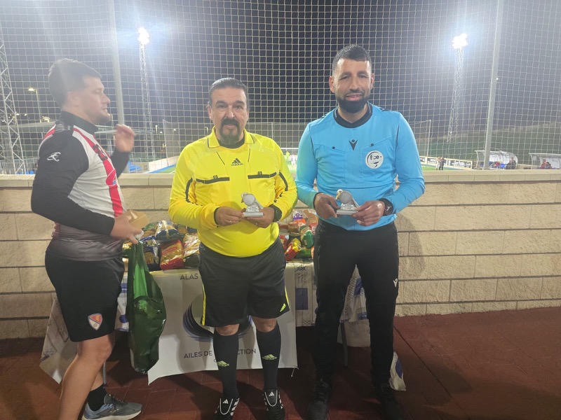 Antes del inicio de los partidos, el club organizador le quiso hacer un detalle a los árbitros que pitan estos partidos, los colegiados Abdelhak y Mehdi. Y también a la propia federación se le entregó una placa como todos los años en agradecimiento por cederle estas instalaciones, Dani Olsson representó a la territorial caballa.