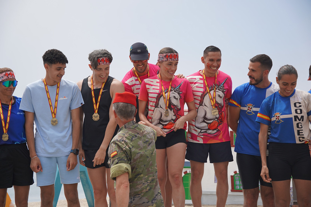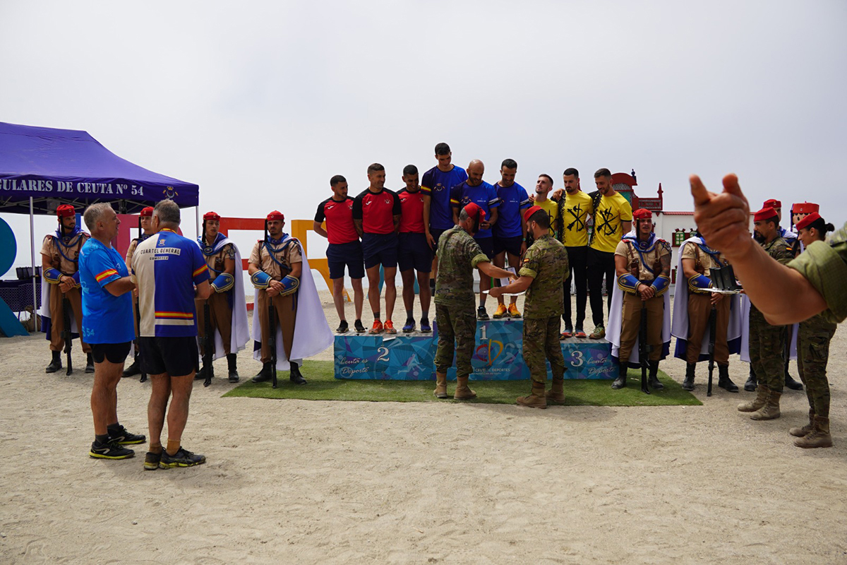 Sudor, coraje y gloria en una competencia para titanes. Esos son los factores que tienen los competidores en la prueba cívico-militar organizada por Regulares, que ha culminado por todo lo alto en la playa de la Ribera.