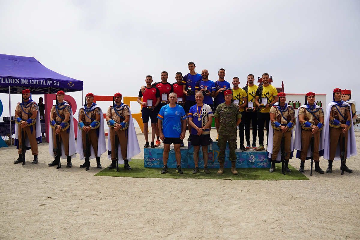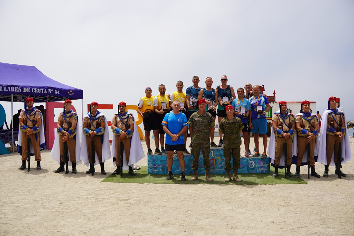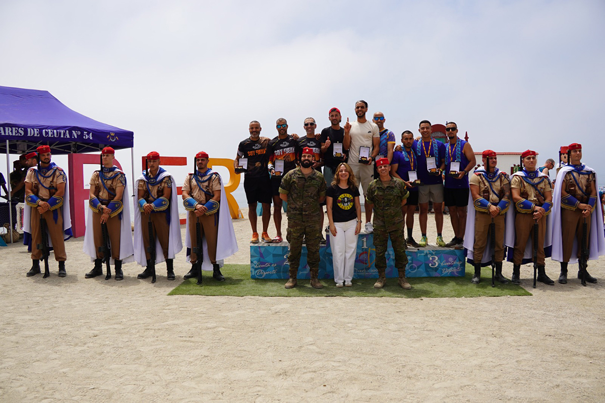 De esta forma, acaba la octava edición del Desafío de los 300 en la playa de la Ribera, una prueba que ha acogido a varios atletas de diferentes puntos de la península. Hasta el punto, que no solo participan militares y civiles de Ceuta, sino también proceden atletas de otros cuarteles de Madrid.