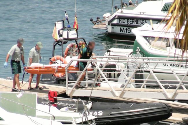 Posteriormente han procedido a su llegada a la base ubicada en el antiguo puerto pesquero a donde ha acudido personal de Policía Judicial de la Guardia Civil, equipo forense y la funeraria.