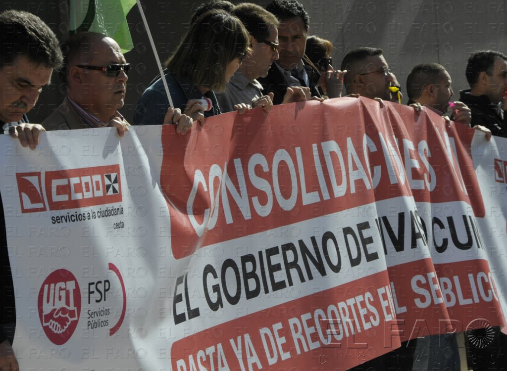 Los representantes legítimos de los trabajadores convocaron ayer a las puertas del Palacio Autonómico una concentración, a la que acudieron unos 150 trabajadores, entre ellos miembros de los cuatro sindicatos presentes en los órganos de representación –UGT, CCOO, CSI.F y USO–. En la misma, el responsable de CCOO en la administración local, José Antonio López, defendió la legalidad de convocar las consolidaciones de empleo: “Desde CCOO lo tenemos clarísimo. No paramos de ver información y nos estamos informando con todos los compañeros de la península, por lo que no nos vale el discurso de que es ilegal –tal y como considera el Ejecutivo local–. Tenemos clarísimo, con nuestro gabinete jurídico, de que las consolidaciones se pueden hacer, y no vamos a parar hasta que haya un calendario para iniciarlas definitivamente. No van a parar las movilizaciones”, afirmó.