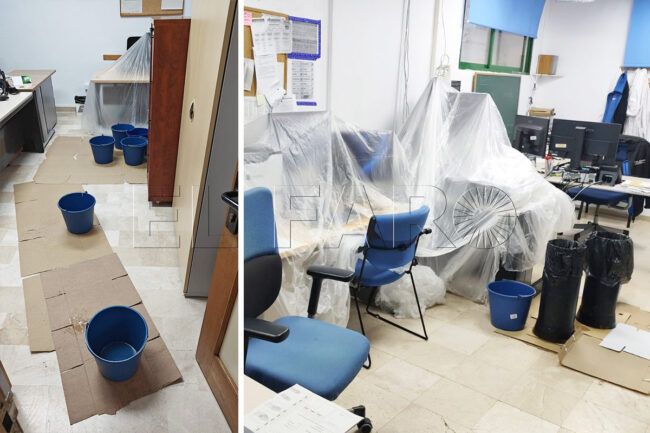 La realidad diaria descrita por los agentes dista mucho de unas condiciones laborales mínimamente seguras. Teclados empapados, goteras constantes y enchufes expuestos al agua forman parte del escenario habitual en algunas oficinas, donde los policías se ven obligados a colocar cubos para recoger filtraciones y plásticos para proteger equipos informáticos.