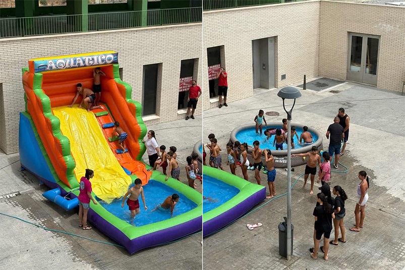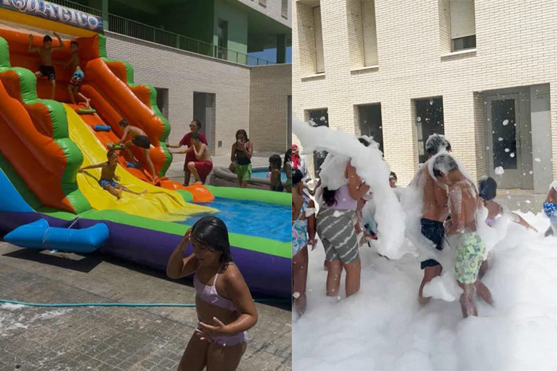En el transcurso del sábado se desarrollaron diversas actividades destinadas a toda la familia: colchonetas de agua, piscinas para los más pequeños, cañón de espuma, juegos tradicionales, yincanas acuáticas y una divertida búsqueda del tesoro.