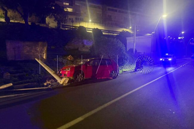 Aparatoso accidente el que ha ocurrido esta noche en Ceuta. Un coche ha terminado empotrándose contra una farola después de que otro vehículo le golpeara por despiste.