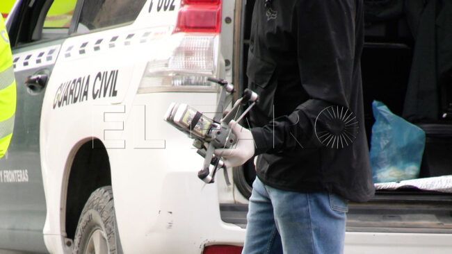 Un agente de la Guardia Civil se ha hecho cargo del dron tras su caída.