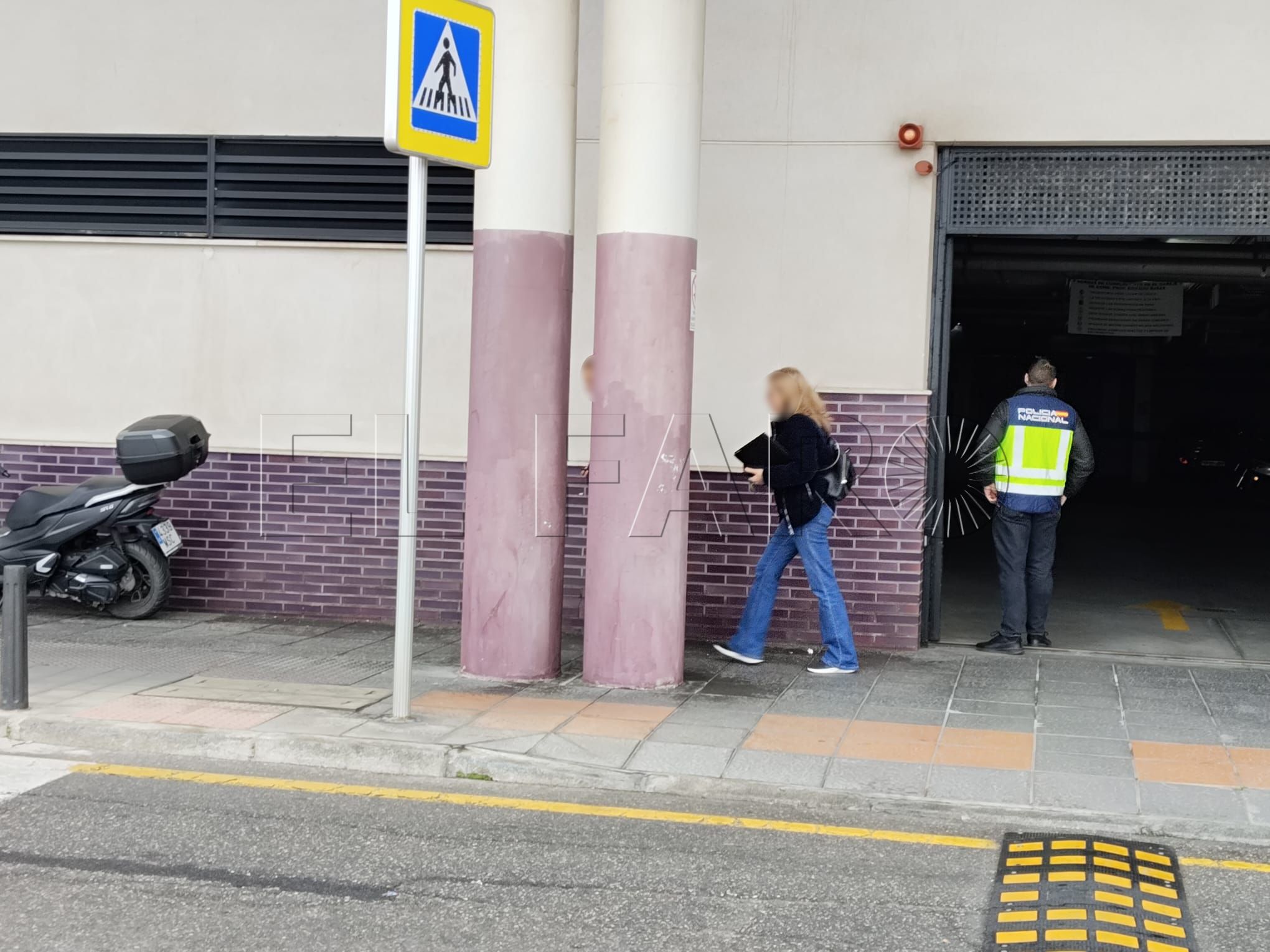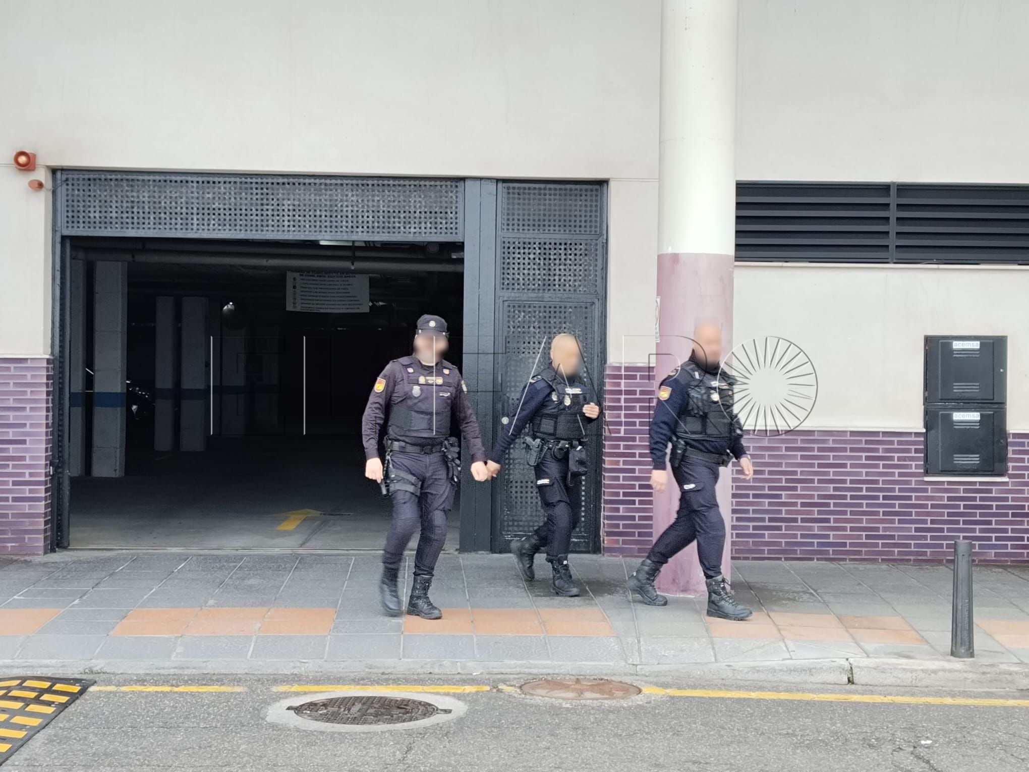 Varios vehículos camuflados aparcaban en torno a las seis de la mañana a las puertas del edificio Baeza para, después, acceder a un garaje y a una vivienda. Han estado hasta primera hora.