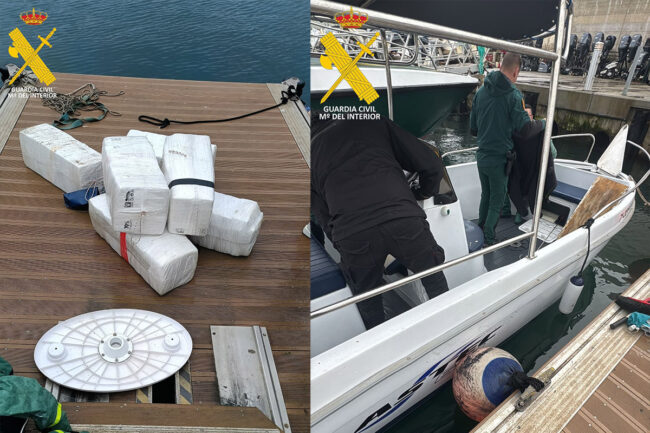 Los agentes han procedido al traslado de la droga y el barco hasta la base del Servicio Marítimo, ubicada en el puerto pesquero. El barco fue sorprendido a una milla y media de San Amaro.