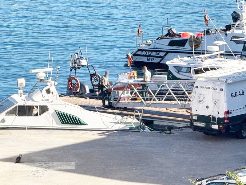 El cuerpo, ya en la base ubicada en el puerto pesquero, será reconocido por el profesional forense antes de su traslado a la sala de autopsias.