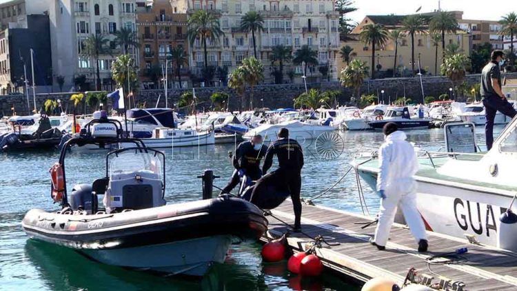 Agentes de la Guardia Civil han localizado este miércoles el cadáver de un magrebí en estado de descomposición a media milla de la playa de Benítez, en Ceuta. Se trata del cuerpo de una varón mayor de edad y que según las primeras estimaciones llevaba un tiempo fallecido (alrededor de una semana), además de que no portaba traje de neopreno. Los componente de la Unidad Marítima del instituto Armado han procedido al traslado del cadáver a la base del puerto deportivo, en donde el Servicio Marítimo tiene su punto fijo de operaciones.