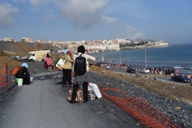Son tanto hombres como mujeres, sobre todo de nacionalidad marroquí, pero cada vez hay en estos tumultos más ceutíes que no encuentran otra forma de subsistir en la segunda región de la Unión Europea con mayor tasa de paro. En la glorieta de Arcos Quebrados, en medio de unos de los solares dejados por la empresa de las obras de ampliación de la carretera nacional, una ceutí explica las razones por las que tiene que dedicarse al porteo. Este lunes estaba dispuesta a resistir hasta que le permitiesen salir a Marruecos. “Aquí puedes aguantar hasta las 23.00 o 00.00 horas y la devuelven. Entonces, ¿de qué vives? ¿Cómo pago yo la luz y el agua? No tengo. ¿Adónde voy, enferma? Dame un puesto de trabajo en Ceuta, como soy de España, o déjame pasar la mercancía a Marruecos. Me conformo con 50 dirhams, con 100 dirhams. Los de Ceuta no tenemos trabajo aquí, ¿qué vamos a ir a robar? Así están los muchachos. Tienen que robar porque no tienen para comer ni para fumar”, aseveró rodeada de mujeres adosándose mercancía al cuerpo.
