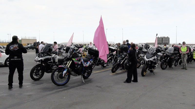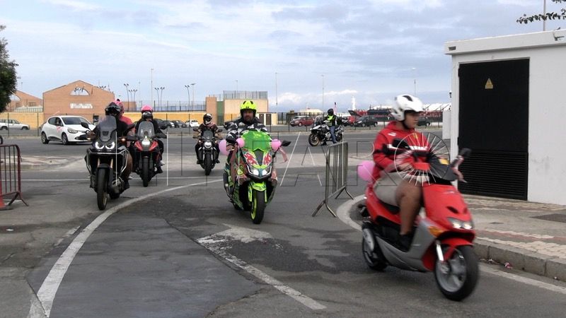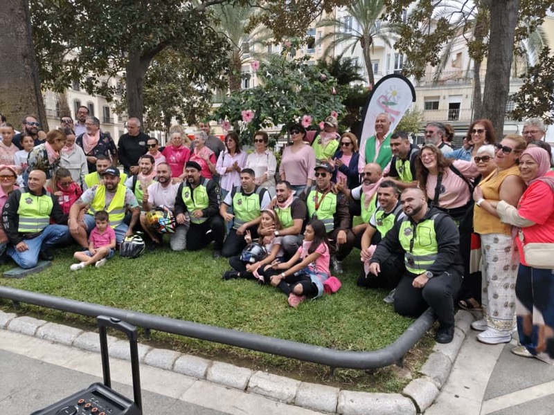 Hacer mucho ruido. Llenar de rugidos de motor la carretera y tocar el claxon para captar la atención. Hacerse notar para luchar contra el cáncer de mama y concienciar. Esa ha sido la misión de medio centenar de moteros de Ceuta.