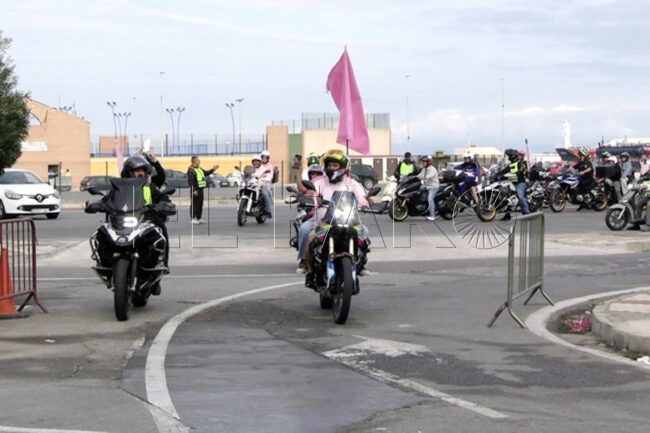 Hacer mucho ruido. Llenar de rugidos de motor la carretera y tocar el claxon para captar la atención. Hacerse notar para luchar contra el cáncer de mama y concienciar. Esa ha sido la misión de medio centenar de moteros de Ceuta.