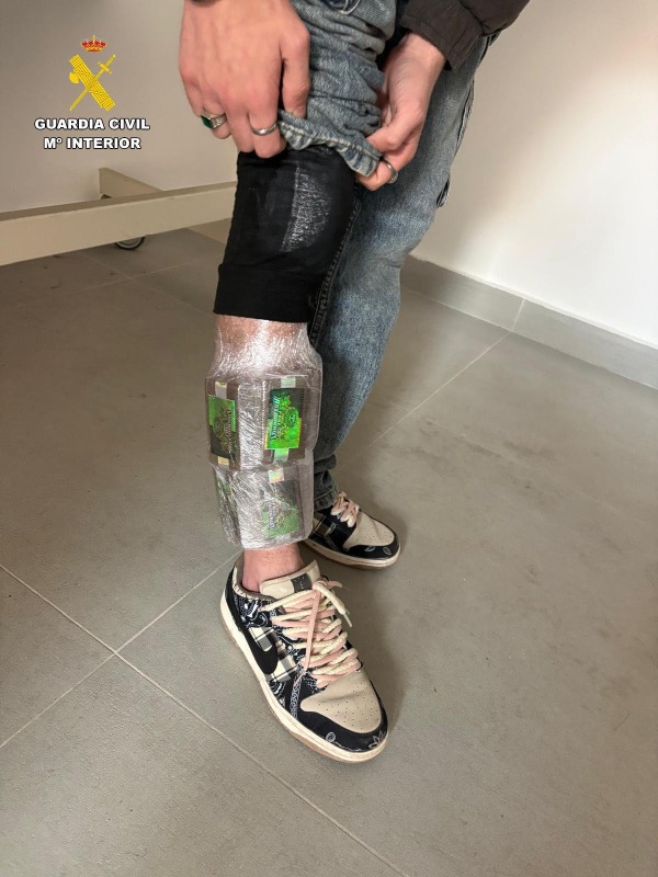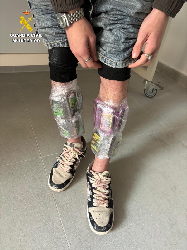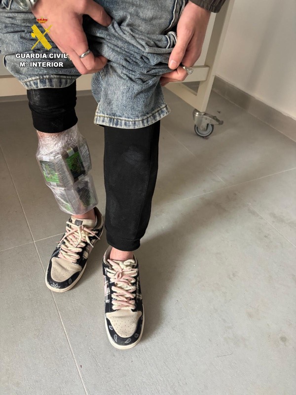 El detenido buscaba embarcar con las tabletas de hachís adosadas a las piernas, pensaba que de esta forma no iban a proceder a su detección, pero cayó en la creencia absurda dados los controles que lleva a cabo la Guardia Civil.