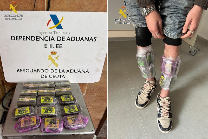 Con ese hachís marca Fake Astronaut en las piernas, el joven quiso burlar a la Guardia Civil.