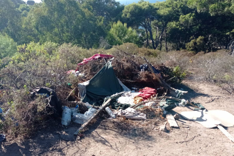 Ya hace muchos días, incluso meses, que muchos de los campamentos de inmigrantes que había en el Hacho fueron abandonados por los inmigrantes o desmantelados por la policía nacional, pero la porquería sigue ahí, todo ello a pesar de que el consejero de medio ambiente dice que se está haciendo mucho por limpiar los montes.