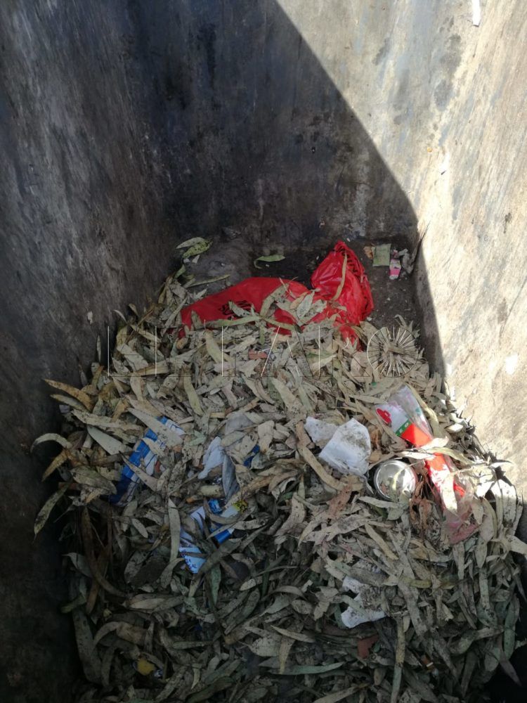 Sobre ella arrojaron hojas y otras bolsas para evitar que nadie realice un aviso en falso