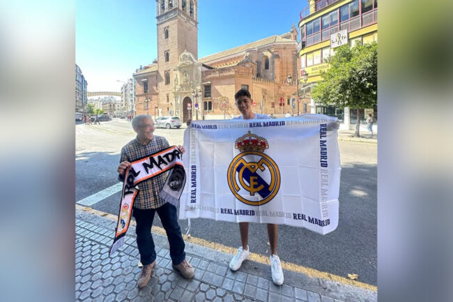 Ya en las redes sociales de la RFFCE se puede apreciar como Haytham y su abuelo ya están en Sevilla apoyando al Real Madrid con su bufanda y su bandera.