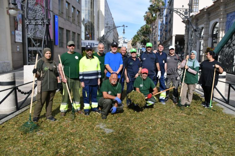 Los helechos ya están colocados. La celebración del Corpus Christi en Ceuta va tomando forma una vez los trabajadores de las Brigadas Verdes han situado en la Gran Vía las hierbas picadas que recogieron en la mañana de este sábado. Sobre ella, miembros de las diversas Hermandades y Cofradías de Ceuta ya ejecutan los dibujos de la alfombra floral con 18.000 claveles.