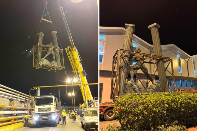 No ha sido nada fácil. Trasladar al Hércules que desde hace años vigilaba la entrada al puerto de Ceuta hasta el corazón de la nueva estación marítima se ha convertido en una auténtica odisea.