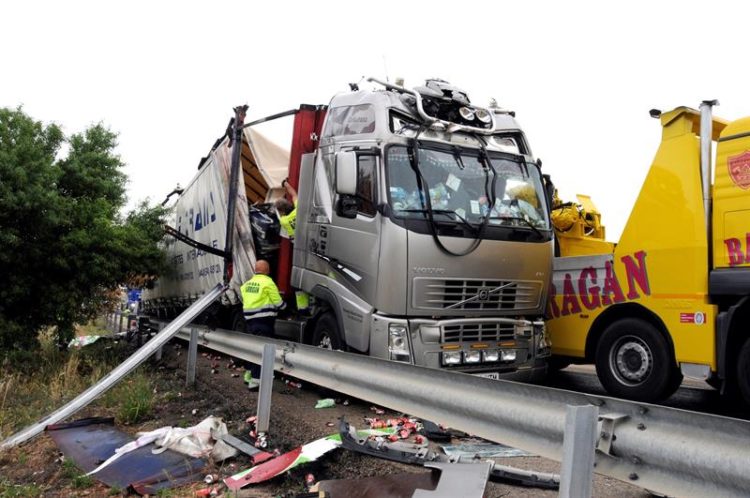 Según ha explicado a Efe el sargento de la Guardia Civil encargado del accidente, el camión se encontraba parado en el arcén por una avería y, por causas que aún se desconocen, el autobús ha colisionado de manera lateral contra él. A consecuencia de la colisión, el autobús ha sufrido una salida de vía aunque no ha llegado a volcar.