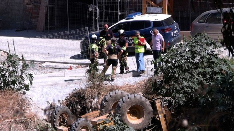 La máquina retroexcavadora estaba operando en una obra cuando, por causas que se desconocen, ha volcado.