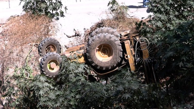 En este punto se está llevando a cabo una obra y en el momento de este accidente se realizaban labores con esta máquina especializada que terminó volcada en el lugar.