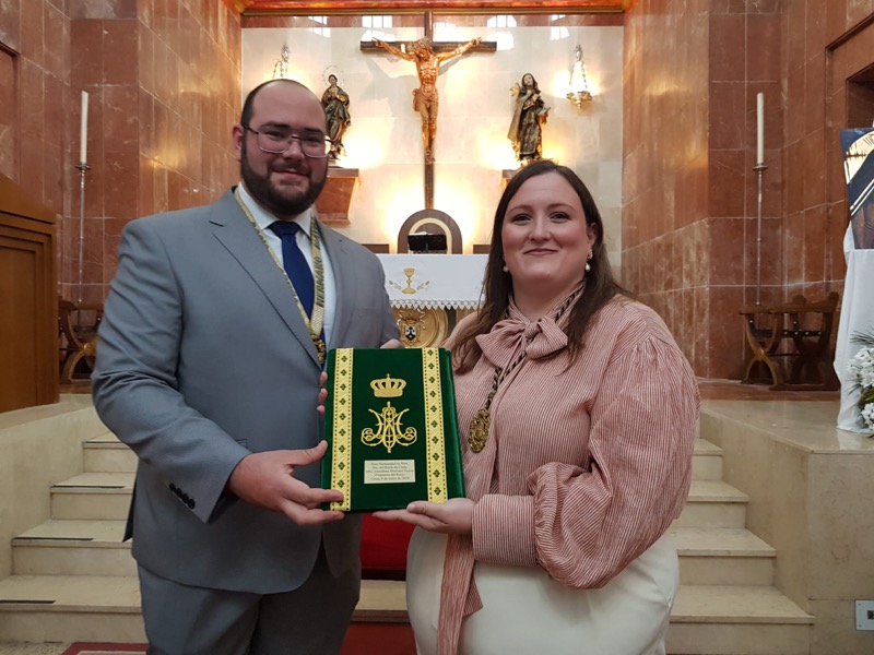 Han entregado en mano las guardas del pregón a Almudena Martínez, hermana que, el próximo nueve de mayo, encarnará en su voz el texto que con tanta delicadeza y cariño ha escrito. Posteriormente, han nombrado al pregonero juvenil, Daniel Riesco, que, con visible emoción, ha aceptado su misión.