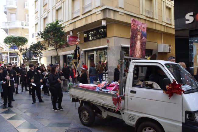 Si este jueves, la Hermandad sorprendía con un espléndido y realista belén viviente en la parroquia de Santa Teresa, hoy han sorprendido a los viandantes de las calles de la ciudad con este pasacalles musical al que los interesados han podido entregar sus donativos en forma de juguetes para los más pequeños.