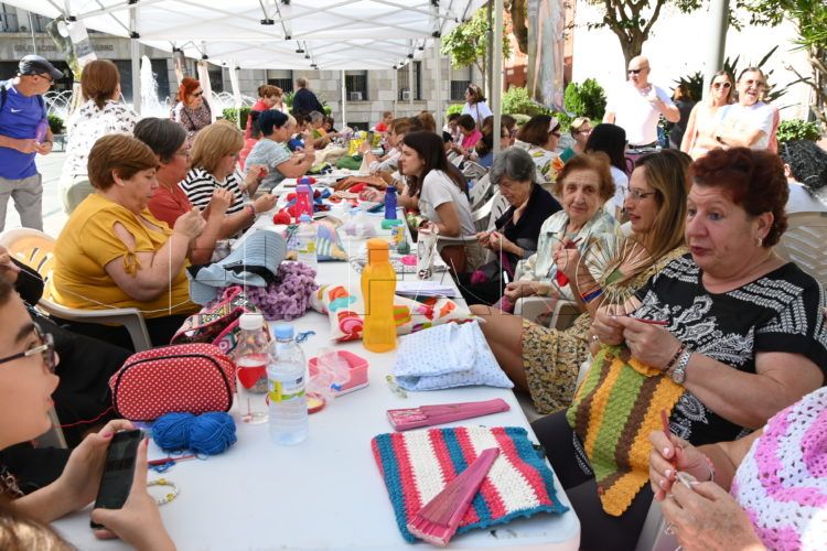 Cuando Emilia Harillo y Celia Cancho se conocieron corría el año 1947. En aquella España en blanco y negro comenzaron a tejer, hasta el día de hoy, sin imaginarse que acabarían haciéndolo "descocadamente" en público, en plena Plaza de los Reyes de Ceuta. Junto a ellas, un buen grupo de veteranas, pero también más jóvenes e incluso niños participaron este sábado en el Día Mundial de Tejer en Público.