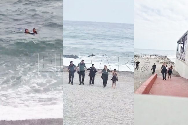 En este vídeo se aprecia toda la secuencia, desde el momento en el que la mujer y el pequeño están en el mar, hasta su entrada en el arenal del Tarajal y el auxilio ofrecido por guardias civiles ante la mirada de ciudadanos atónitos que se han convertido en testigos de este auténtico drama migratorio.