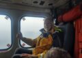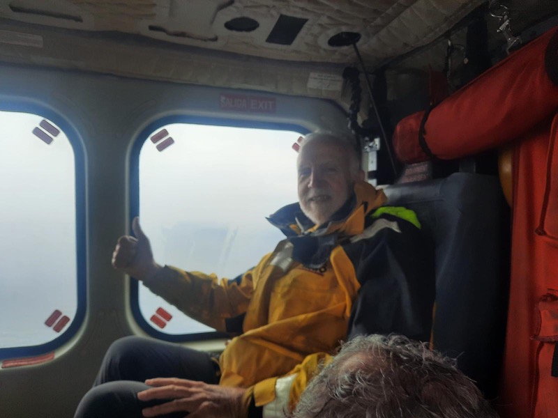 El helicóptero apareció en el horizonte como una confirmación de que todo había salido bien. El rescate se completó por aire, mientras en el mar una embarcación intentaba, sin éxito, salvar el velero.