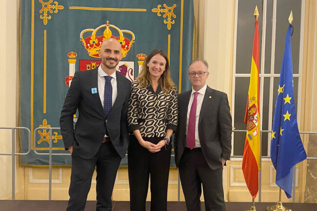 Una vez concluida la ceremonia, se acercó a darles la bienvenida al presidente del Foro de la Educación de Ceuta y a su homólogo de Melilla, Sergio Balbuena Teruel. Ambos tuvieron la ocasión de conversar extensamente con la directora General de Planificación y Gestión Educativa, Susana Tejadillos Perona.