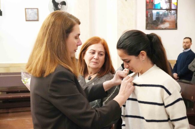 Los padres y la hermana de Álvaro García han asistido a la misa y se les ha entregado una insignia en la que se nombra a Álvaro García Enfermero Referente a título póstumo.