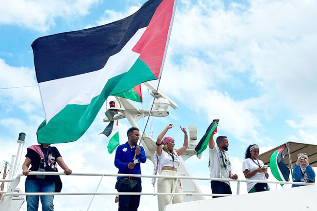 “Desde el puerto zarpó la verdad con su nombre tallado en la dignidad, rosa en el puño, fuego en la voz, Hanan Alcalde con Gaza en el corazón”, recoge la grabación.