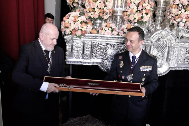 Por ello, el jefe superior de la Policía Nacional recibió la medalla de la Hermandad de la Amargura, una distinción con la que la cofradía quiso agradecer el apoyo y la vinculación que mantiene con la institución.